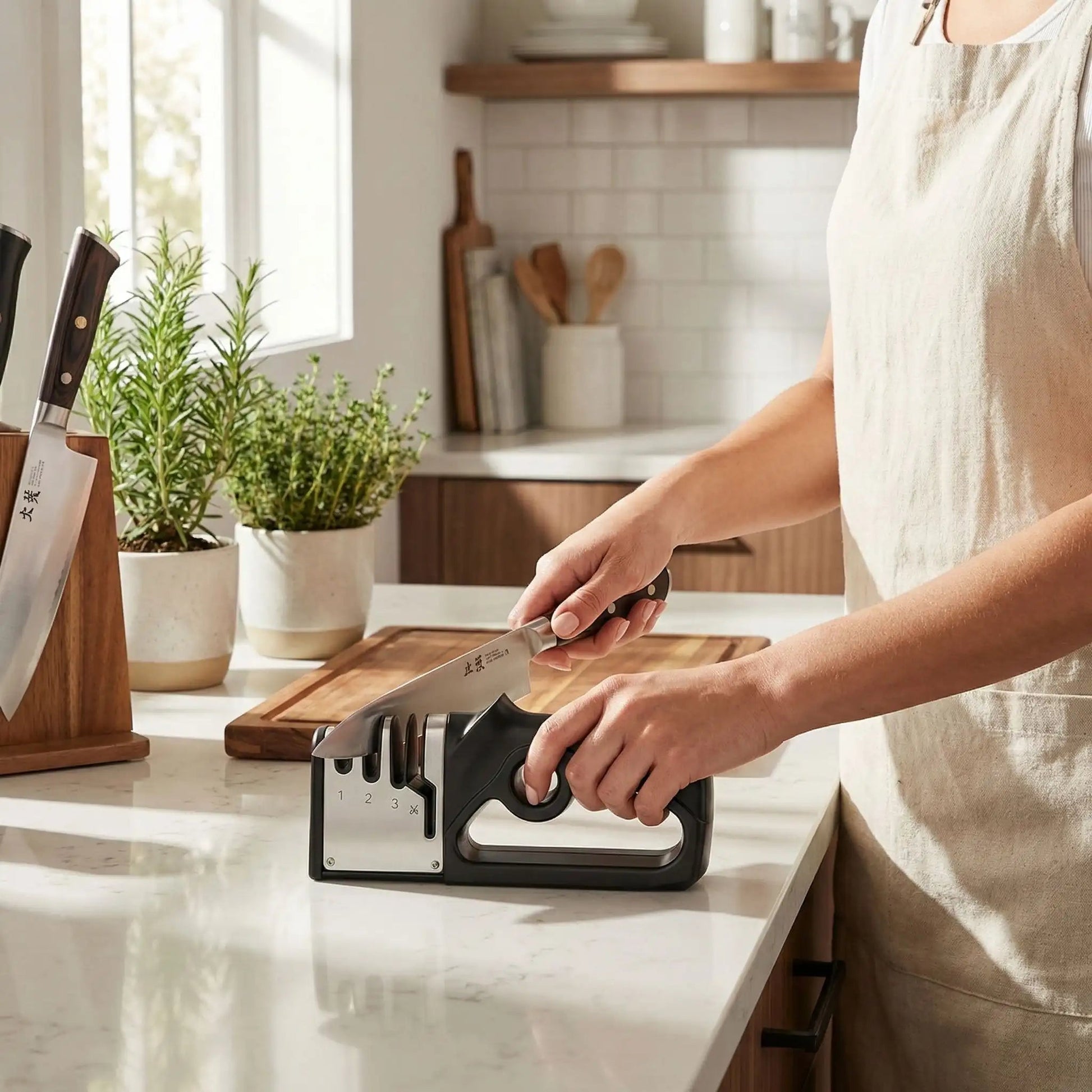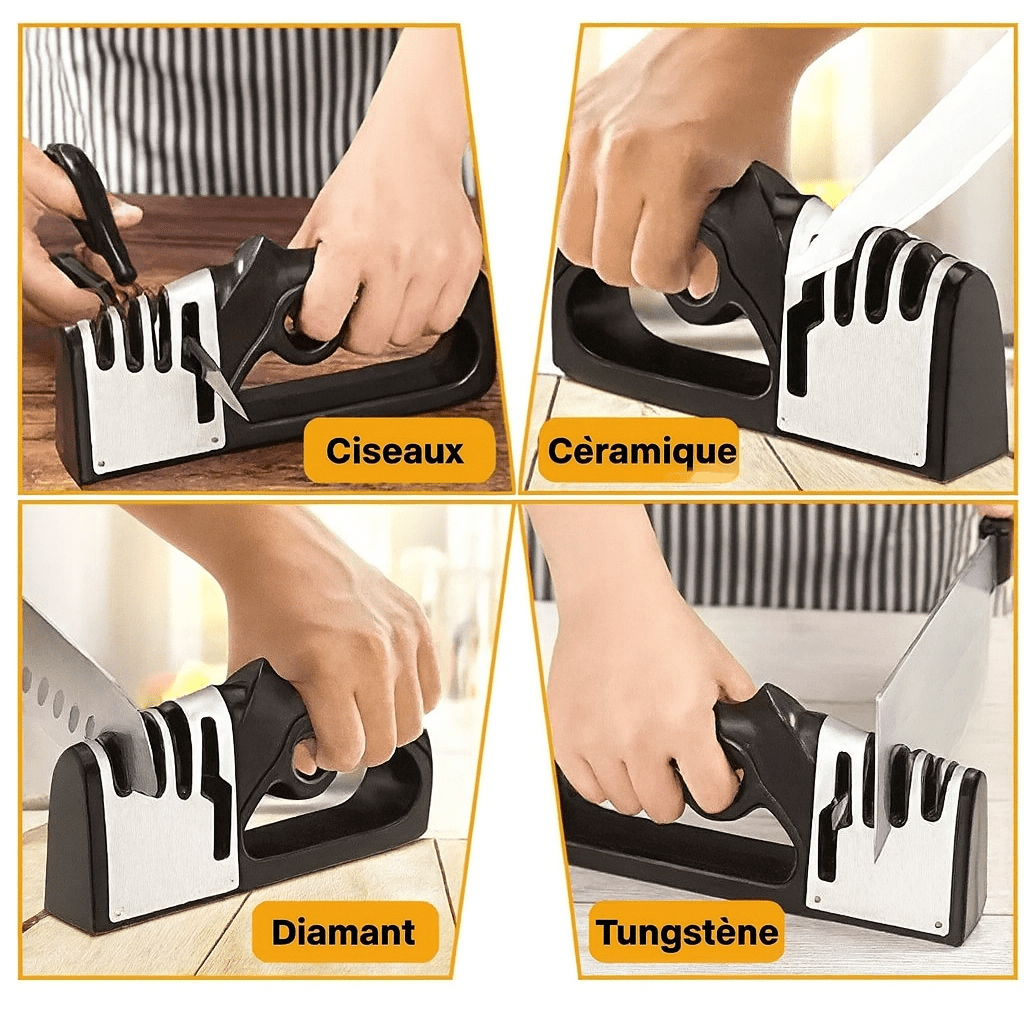 Un couteau bien aiguisé transforme votre expérience en cuisine. Avant, vous écrasiez plus que vous ne coupiez, maintenant vos tomates se tranchent en fines rondelles parfaites. Avez-vous déjà ressenti cette frustration face à une légumineuse qui résiste sous votre lame ? C'est exactement ce que résout un bon aiguiseur couteau. Les cuisiniers amateurs passent en moyenne 40% plus de temps à préparer leurs ingrédients avec des couteaux émoussés. Non seulement c'est inefficace, mais cela augmente aussi significativement le risque de glissade et de blessure. ""Depuis que j'ai mon aiguiseur, je redécouvre le plaisir de cuisiner. Mes couteaux tranchent comme au premier jour, c'est comme avoir une nouvelle batterie de cuisine !"" témoigne Marie, passionnée de cuisine depuis 20 ans.
